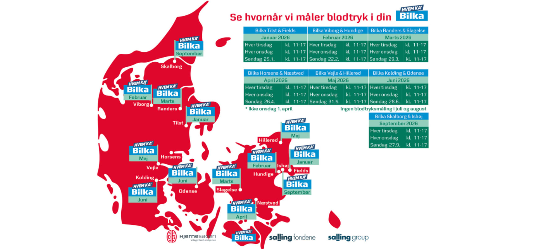 I et samarbejde mellem Salling Group og Hjernesagen har kunder i en lang række Bilka-varehuse og enkelte Netto-butikker siden foråret 2024 haft mulighed for at få målt blodtryk, mens de handler. Det handler om at sikre, at hverdagens travlhed ikke er skyld i, at danskerne nedprioriterer og dermed undlader at tjekke deres blodtryk. Forhøjet blodtryk er nemlig en af de hyppigste årsager til stroke. Netop derfor indgik Hjernesagen og Salling Group i 2024 det strategiske partnerskab med målet om at reducere antallet af stroke.